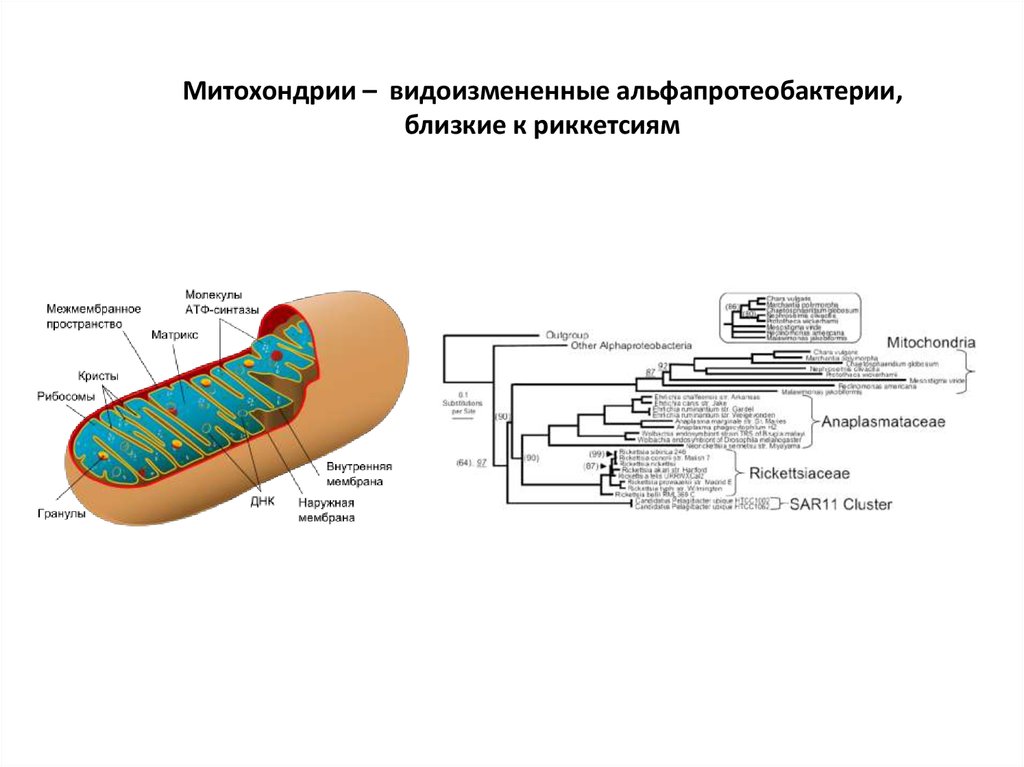 Митохондрии – видоизмененные альфапротеобактерии,близкие к риккетсиям