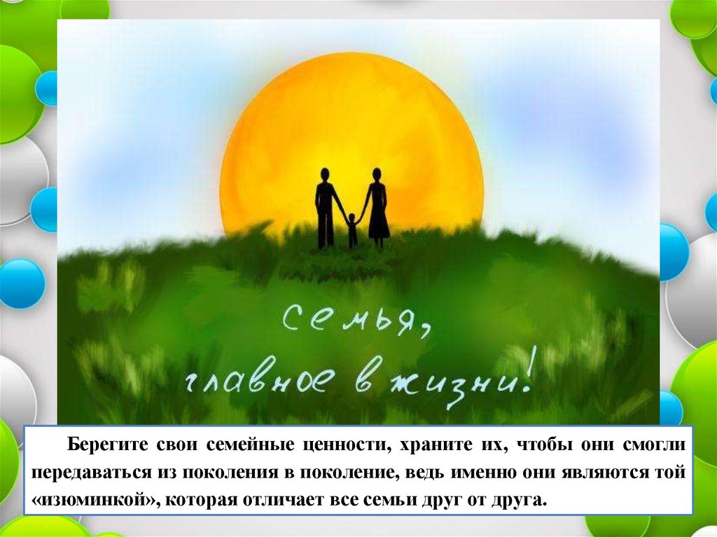 Берегите свои семейные ценности, храните их, чтобы они смоглипередаваться из поколения в поколение, ведь именно они являются той