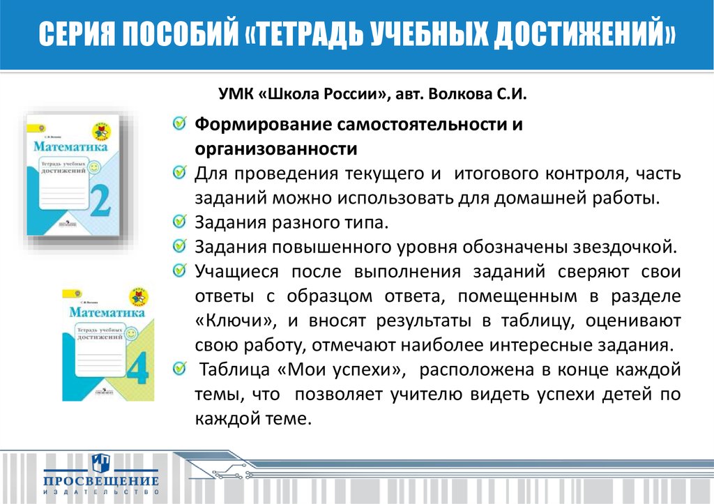 СЕРИЯ ПОСОБИЙ «ТЕТРАДЬ УЧЕБНЫХ ДОСТИЖЕНИЙ»УМК «Школа России», авт. Волкова С.И.