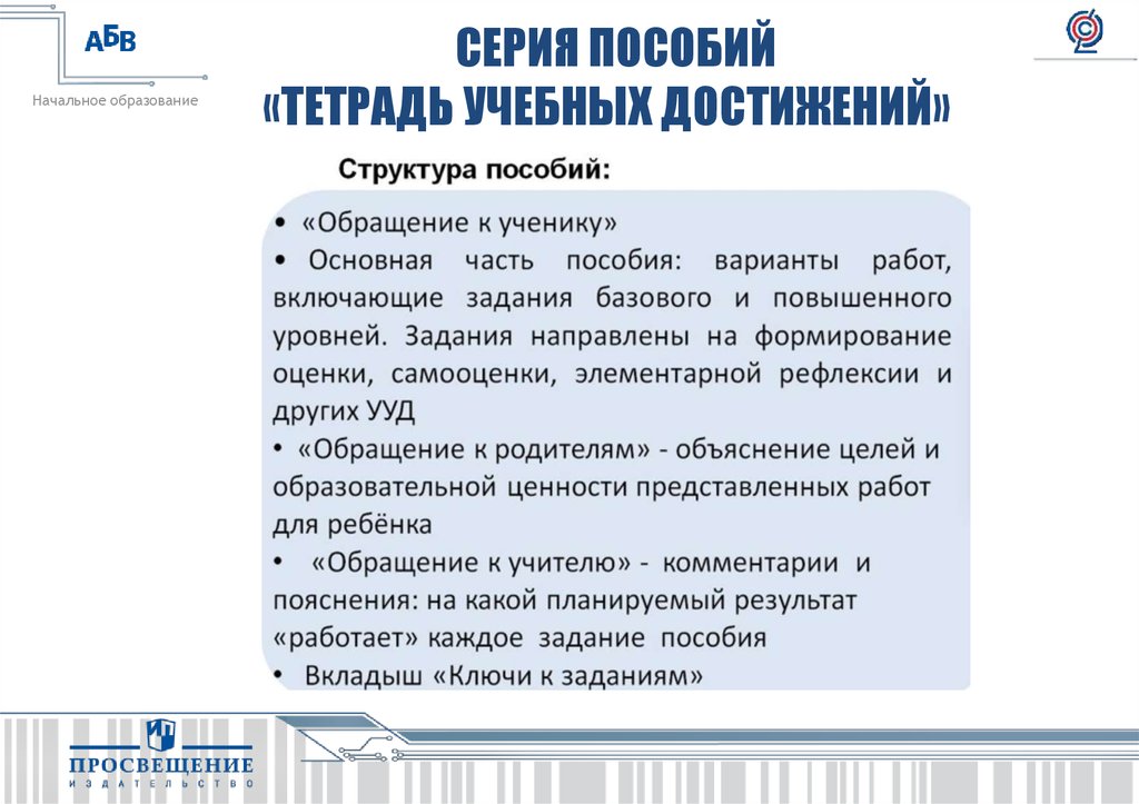 Центр начального образования. Серия пособий «Тетрадь учебных достижений»