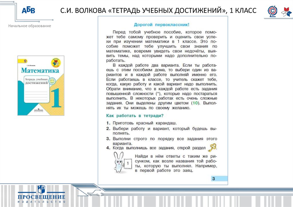 С.И. ВОЛКОВА «ТЕТРАДЬ УЧЕБНЫХ ДОСТИЖЕНИЙ», 1 КЛАССНачальное образование