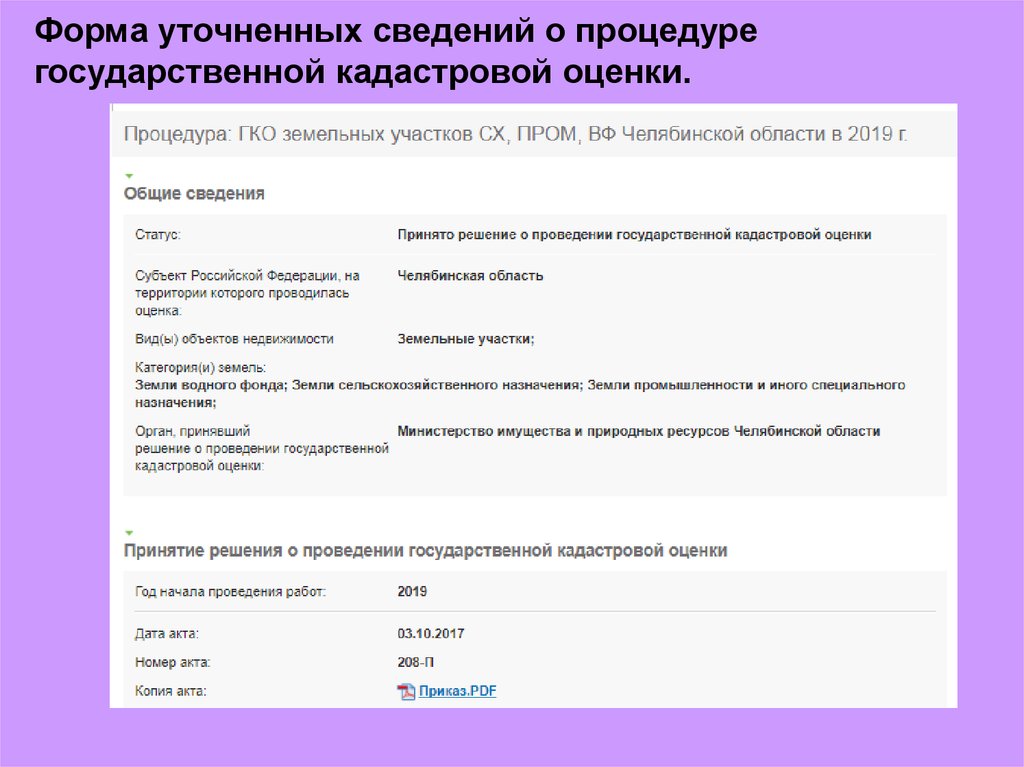 Форма уточненных сведений о процедурегосударственной кадастровой оценки.
