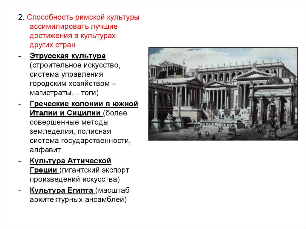 2. Способность римской культурыассимилировать лучшие