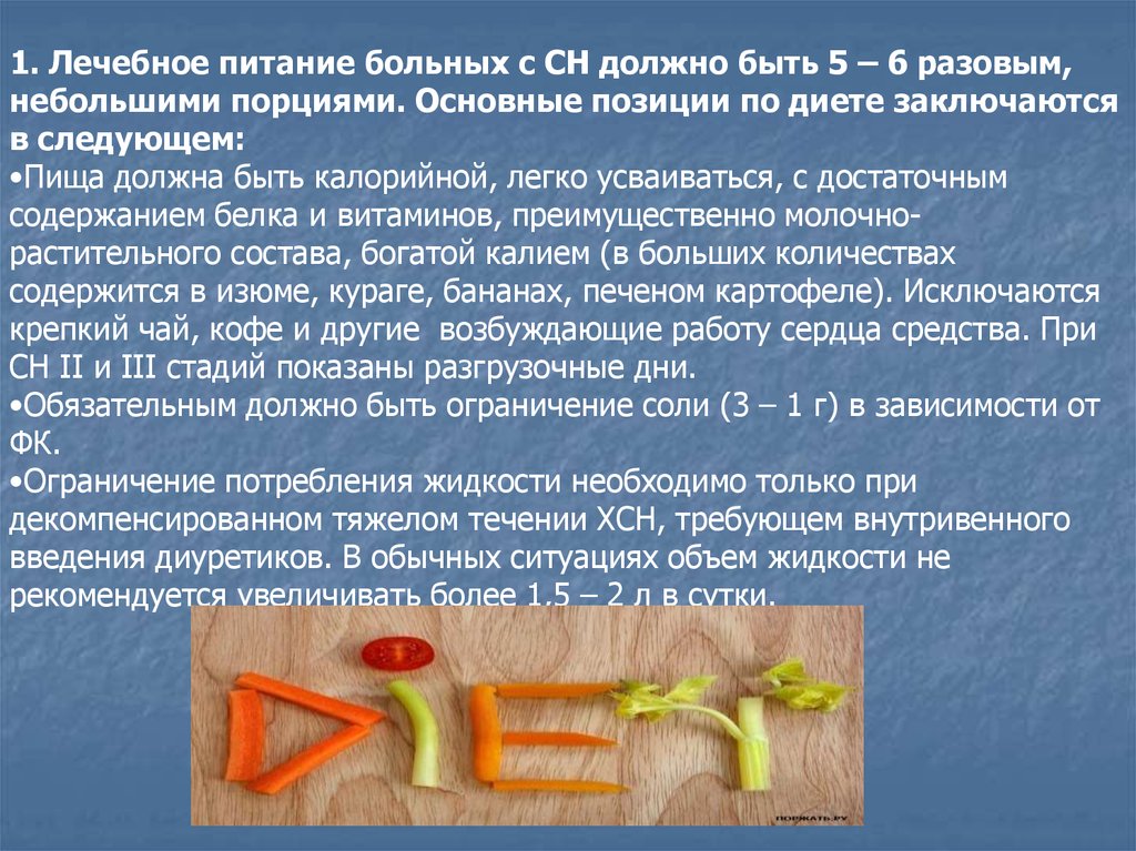 •Обязательным должно быть ограничение соли (3 – 1 г) в зависимости от