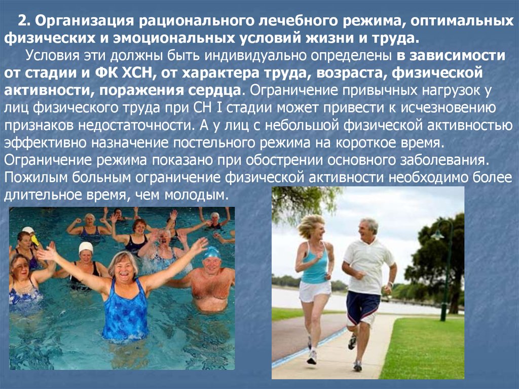 2. Организация рационального лечебного режима, оптимальныхфизических и эмоциональных условий жизни и труда.