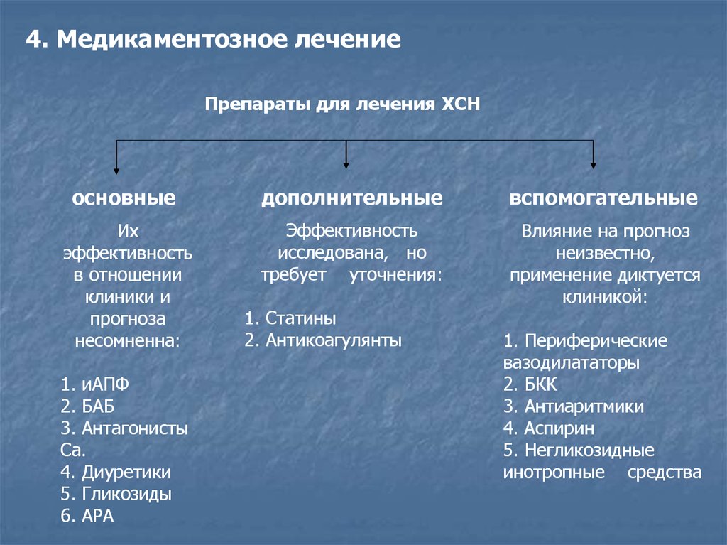 4. Медикаментозное лечениеПрепараты для лечения ХСН