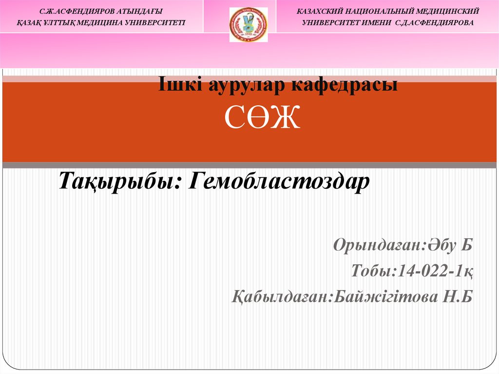 С.Ж.АСФЕНДИЯРОВ АТЫНДАҒЫКАЗАХСКИЙ НАЦИОНАЛЬНЫЙ МЕДИЦИНСКИЙ