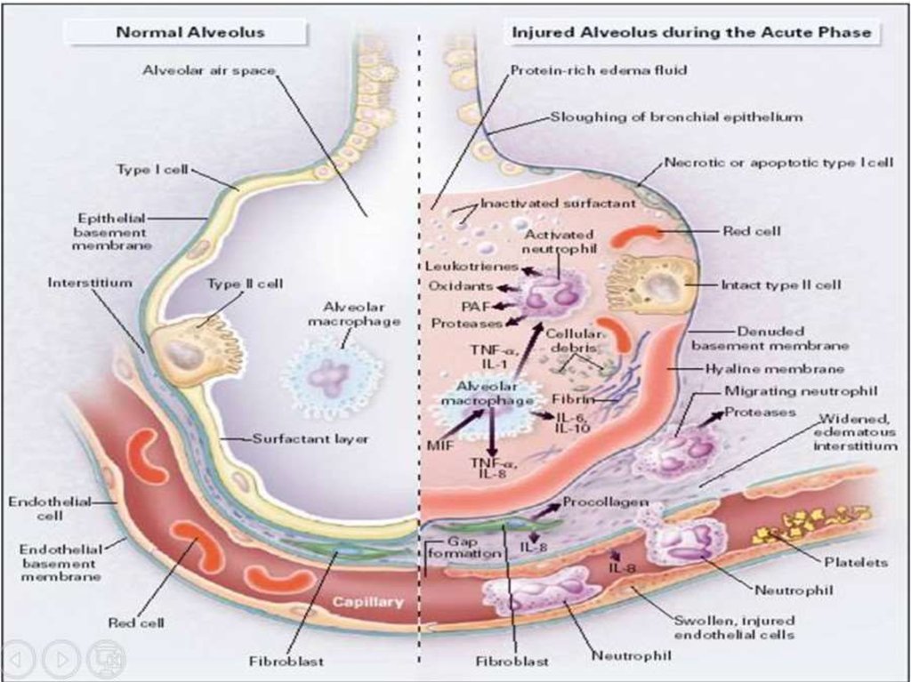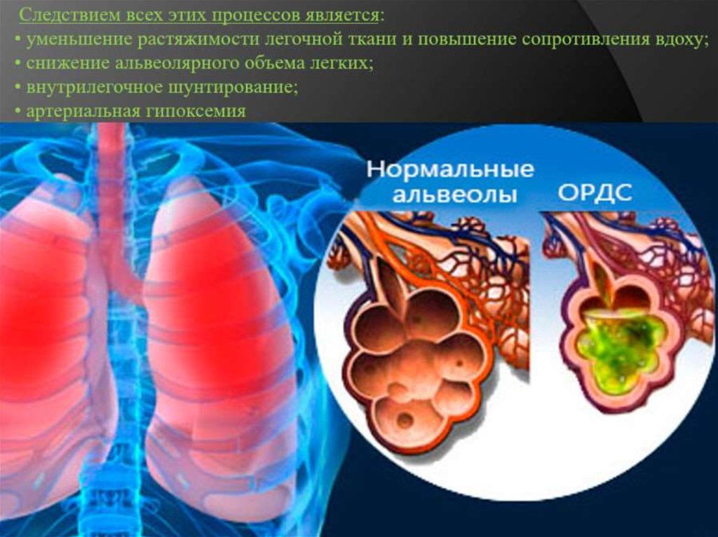 • Острый респираторный дистресс-синдром(ОРДС) жизнеугрожающее воспалительное поражени