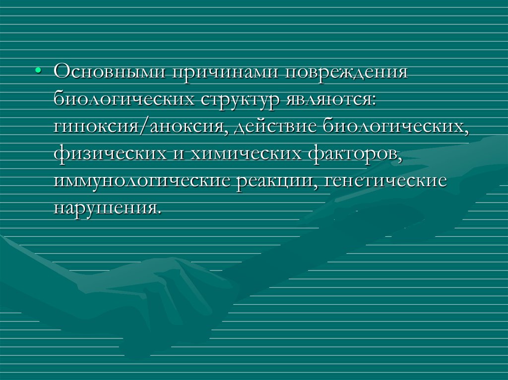 • Основными причинами повреждениябиологических структур являются: