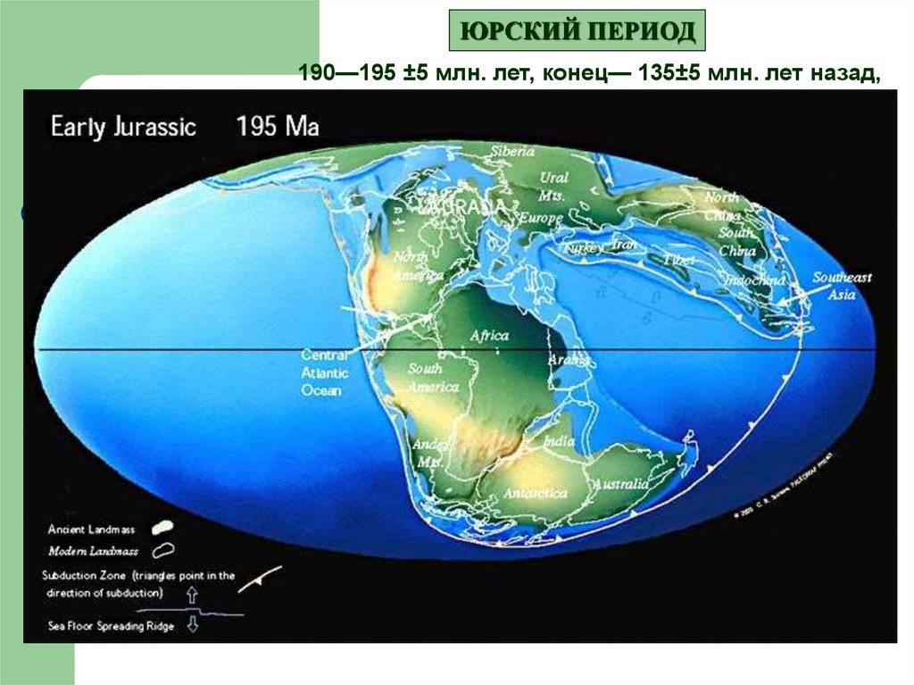 ЮРСКИЙ ПЕРИОД190—195 ±5 млн. лет, конец— 135±5 млн. лет назад,