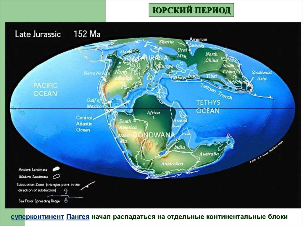 ЮРСКИЙ ПЕРИОДсуперконтинент Пангея начал распадаться на отдельные континентальные блоки