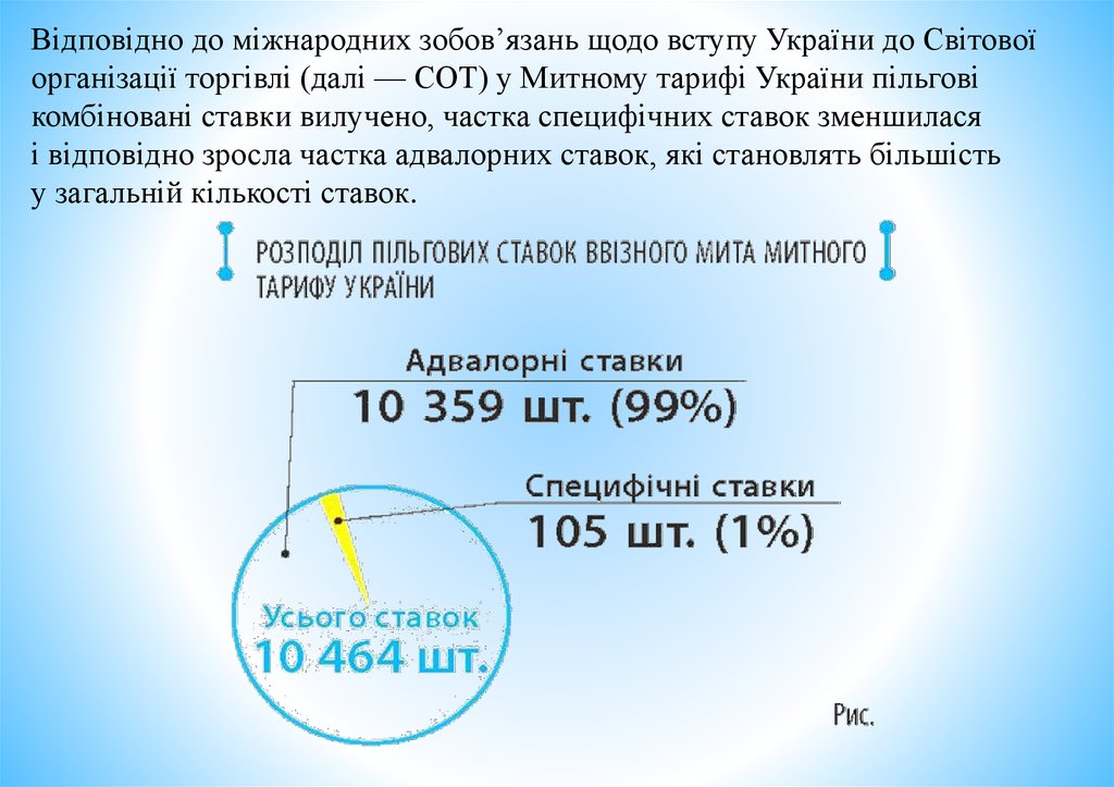 Відповідно до міжнародних зобов’язань щодо вступу України до Світовоїорганізації торгівлі (далі — СОТ) у Митному тарифі України пільгові