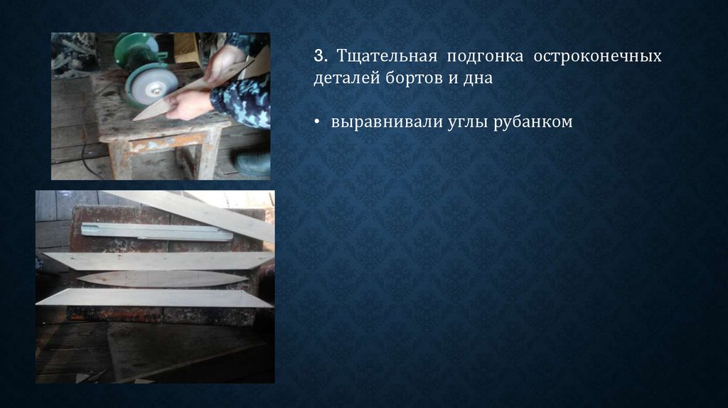 3. Тщательная подгонка остроконечныхдеталей бортов и дна