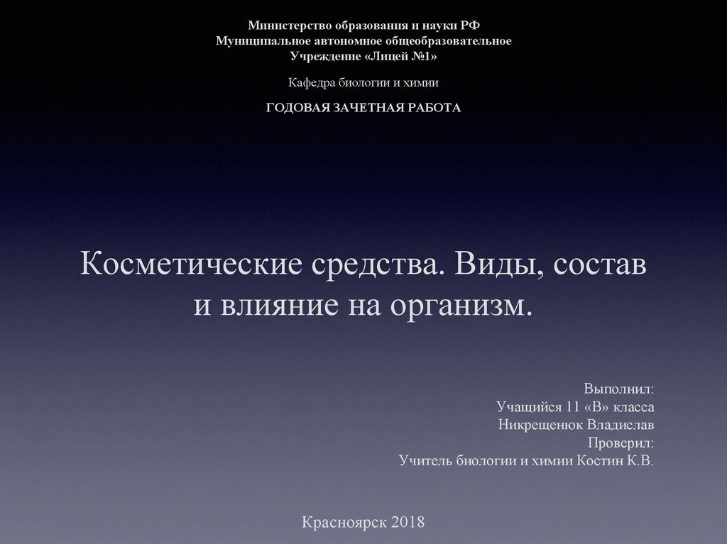 Косметические средства. Виды, состав и влияние на организм