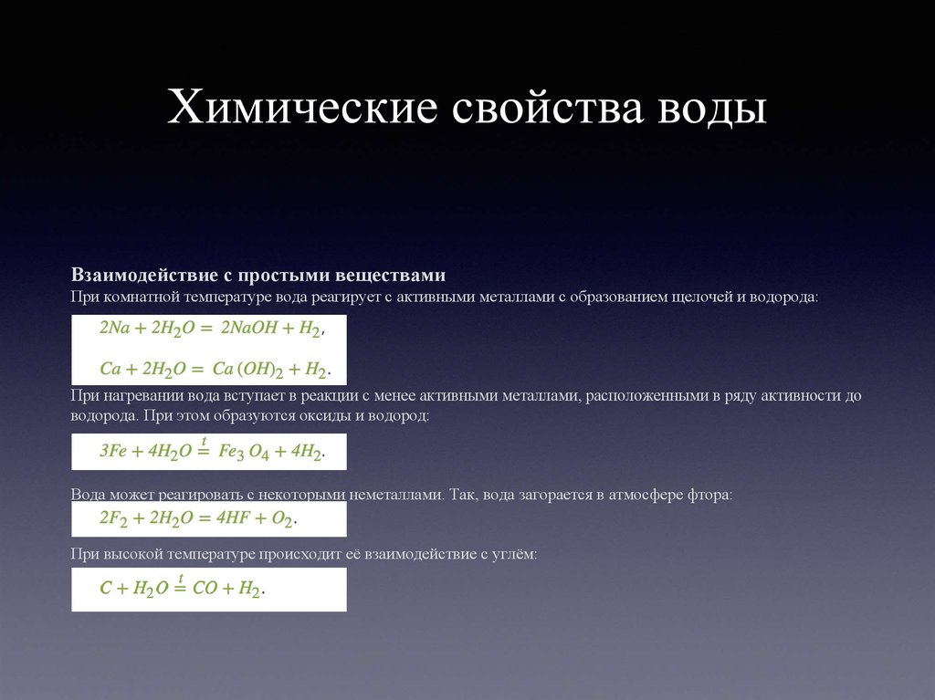 Химические свойства водыВзаимодействие с простыми веществами