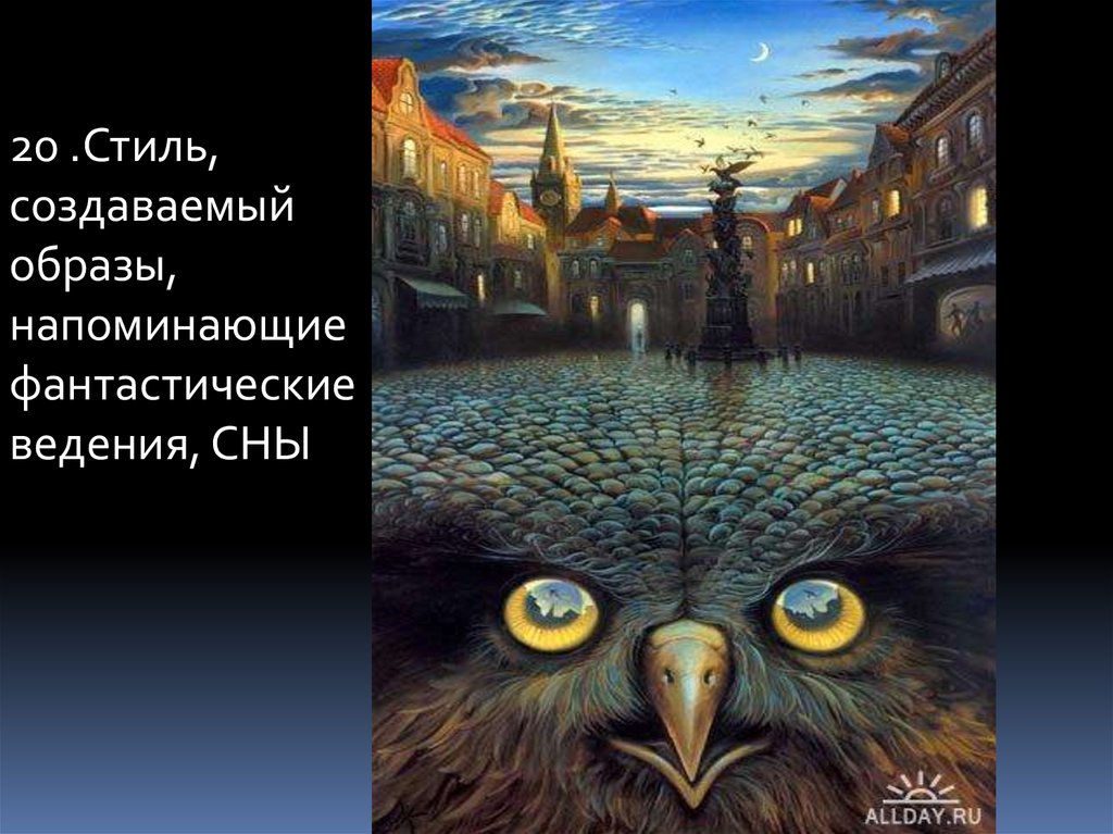 4. 6. В 30-х годах ХХ века в среде сюрреалистов появляется итальянский художник, который воплотил в своем творчестве кульминацию