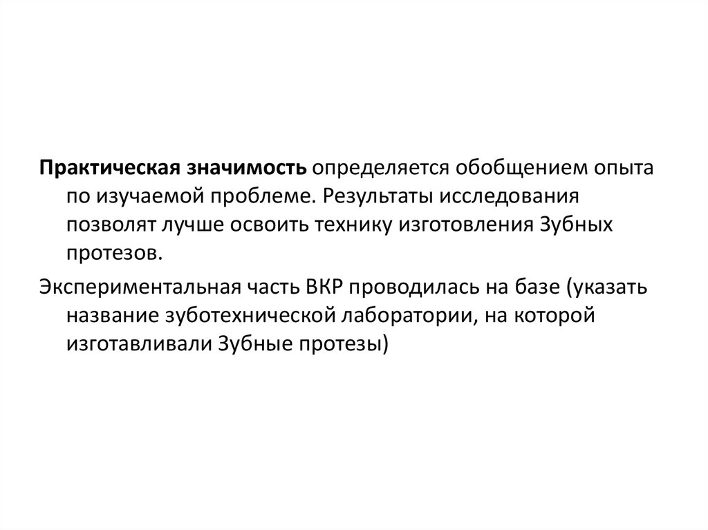 • Исследование изготовления Зубного протеза (указатьназвание протеза) актуально так как в ходе выполнения