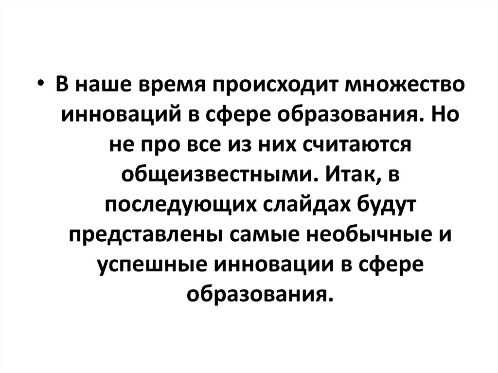 • В наше время происходит множествоинноваций в сфере образования. Но
