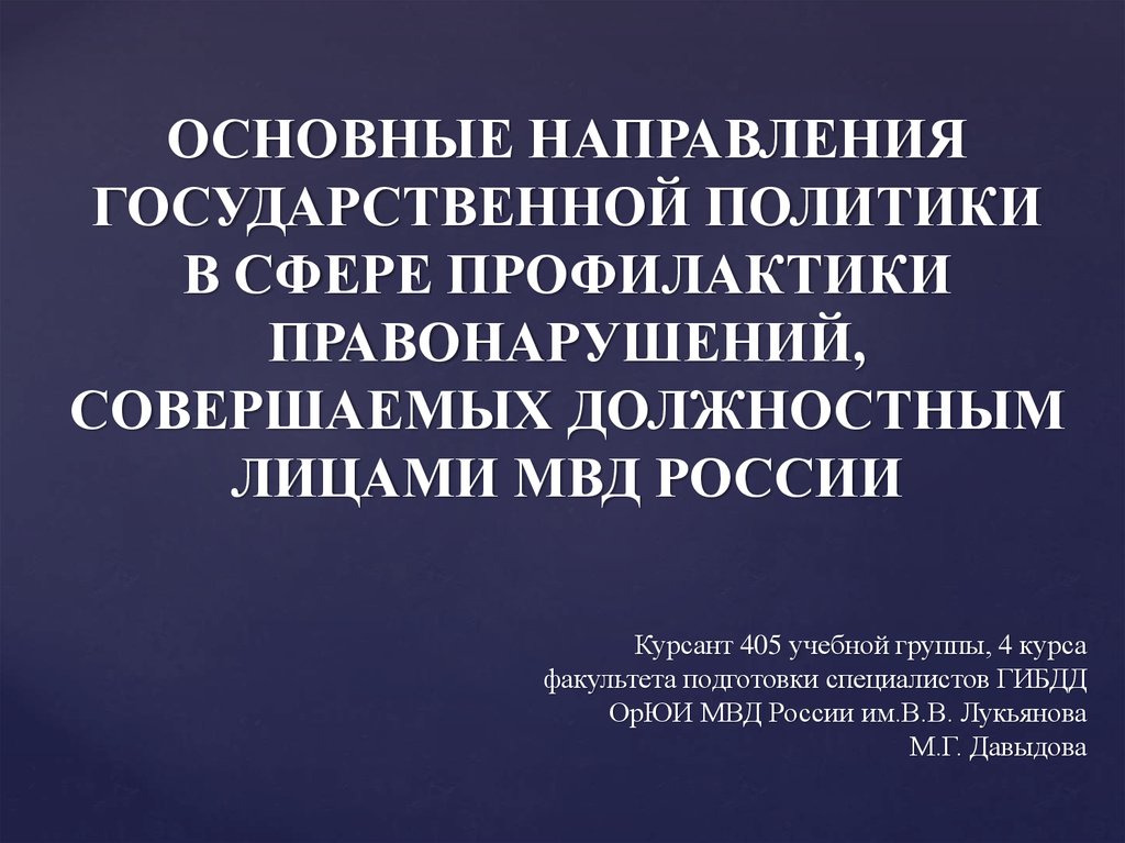 Государственная политика в сфере профилактики правонарушений, совершаемых должностным лицами МВД России