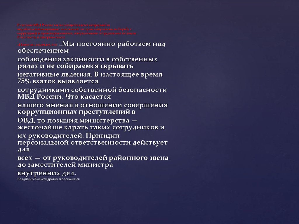 В системе МВД России также осуществляется непрерывнаявыработка инновационных положений, которые направлены на борьбу с