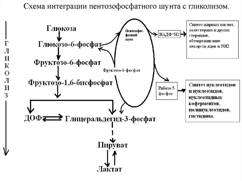 Схема интеграции пентозофосфатного шунта с гликолизом