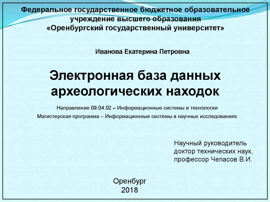 Федеральное государственное бюджетное образовательноеучреждение высшего образования