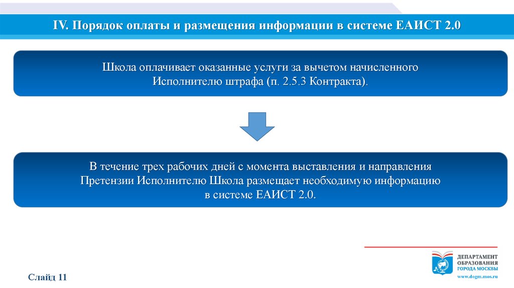 IV. Порядок оплаты и размещения информации в системе ЕАИСТ 2.0Школа оплачивает оказанные услуги за вычетом начисленного