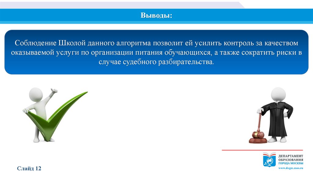 Выводы:Соблюдение Школой данного алгоритма позволит ей усилить контроль за качеством
