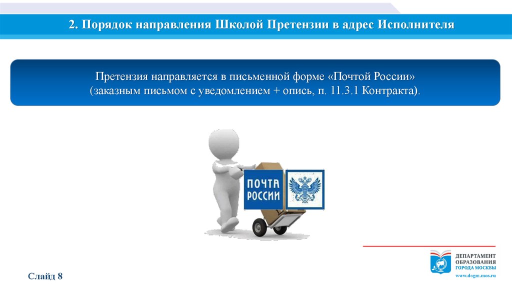 2. Порядок направления Школой Претензии в адрес ИсполнителяПретензия направляется в письменной форме «Почтой России»