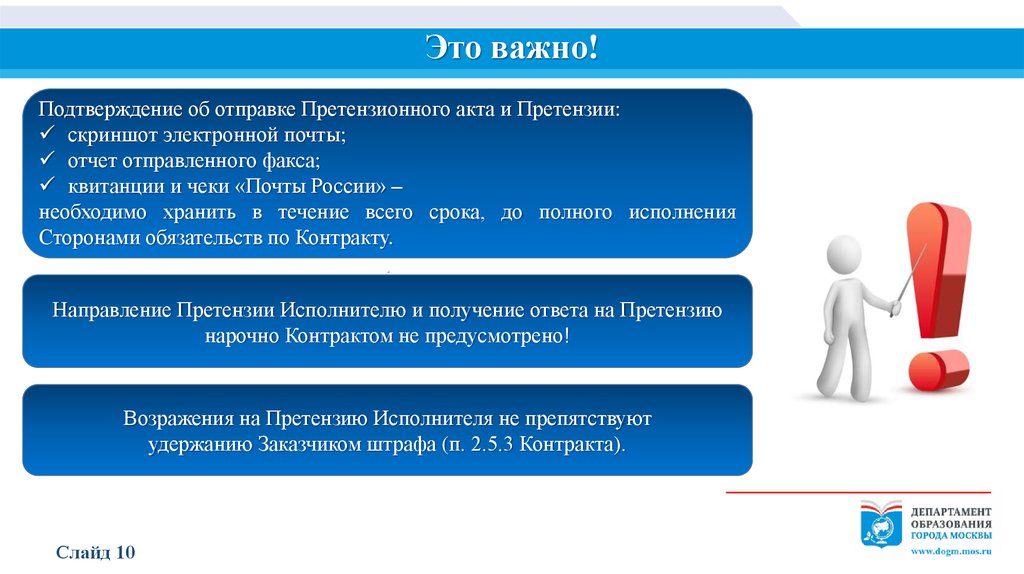 Это важно!Подтверждение об отправке Претензионного акта и Претензии: