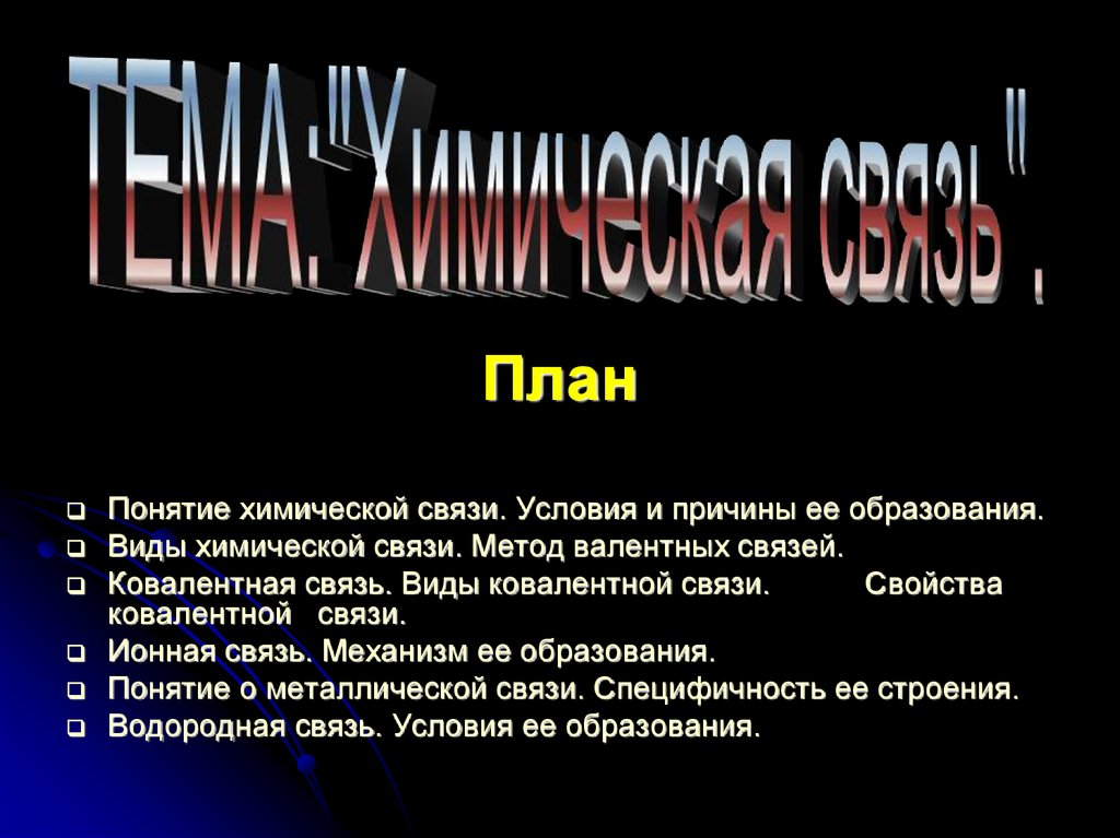 ПланПонятие химической связи. Условия и причины ее образования.