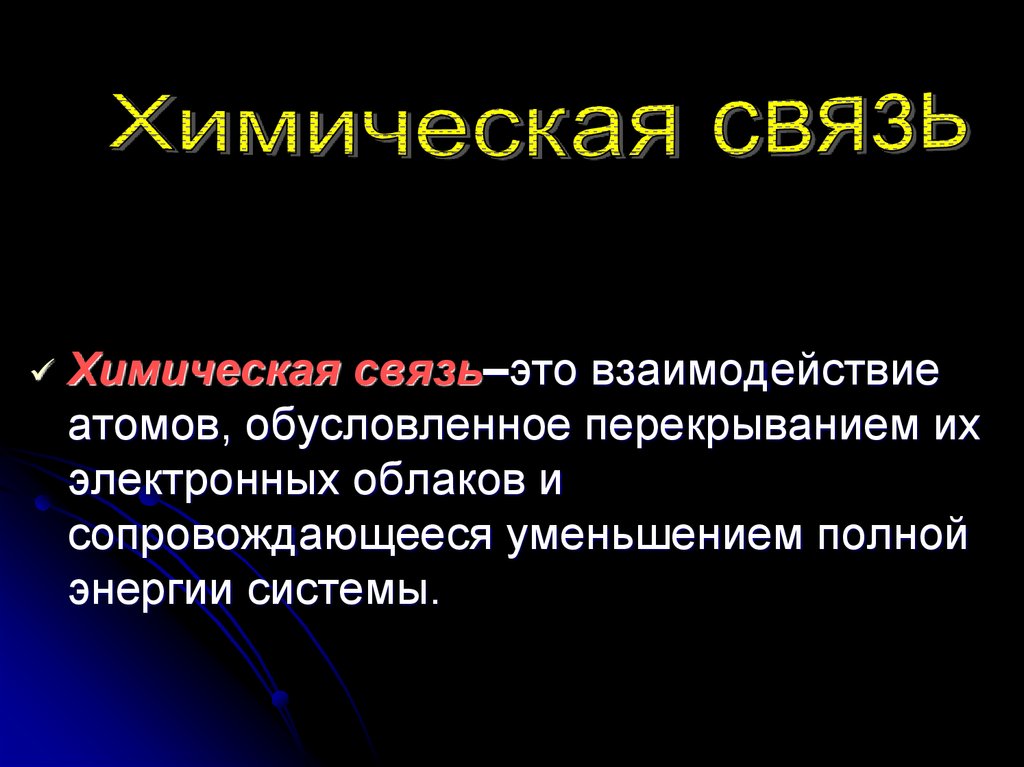 Химическая связь–это взаимодействиеатомов, обусловленное перекрыванием их
