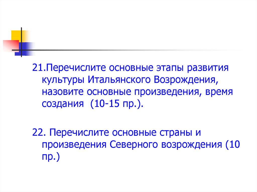 21.Перечислите основные этапы развитиякультуры Итальянского Возрождения,