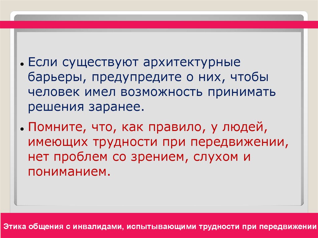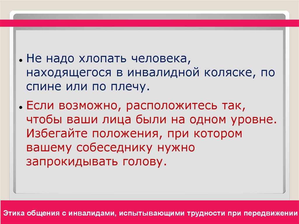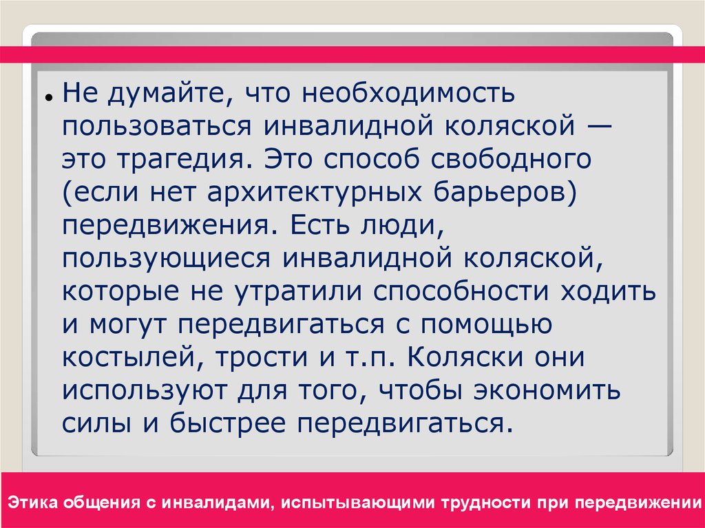 Этика общения с инвалидами, испытывающими трудности при передвижении