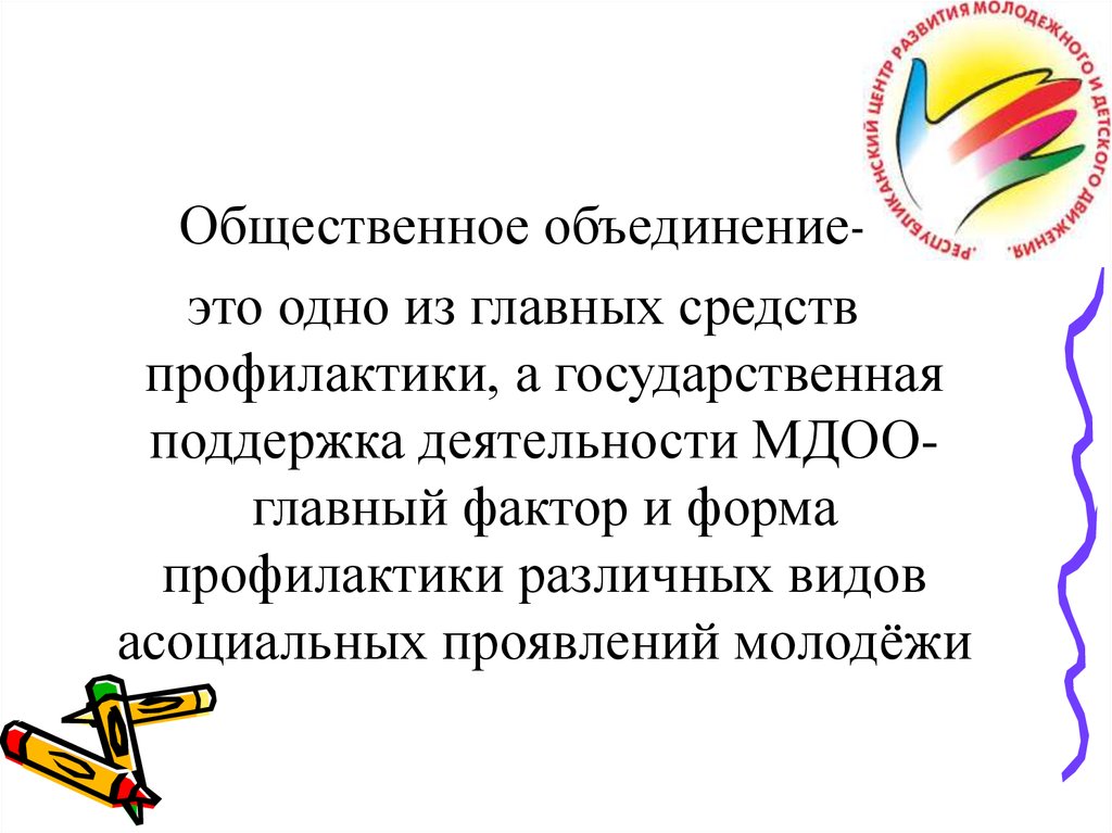 Общественное объединениеэто одно из главных средствпрофилактики, а государственная