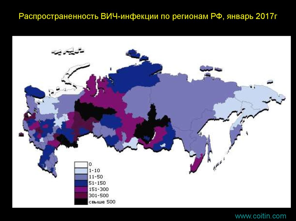 Распространенность ВИЧ-инфекции по регионам РФ, январь 2017гwww.coitin.com