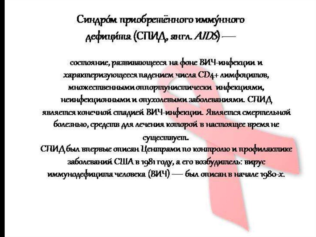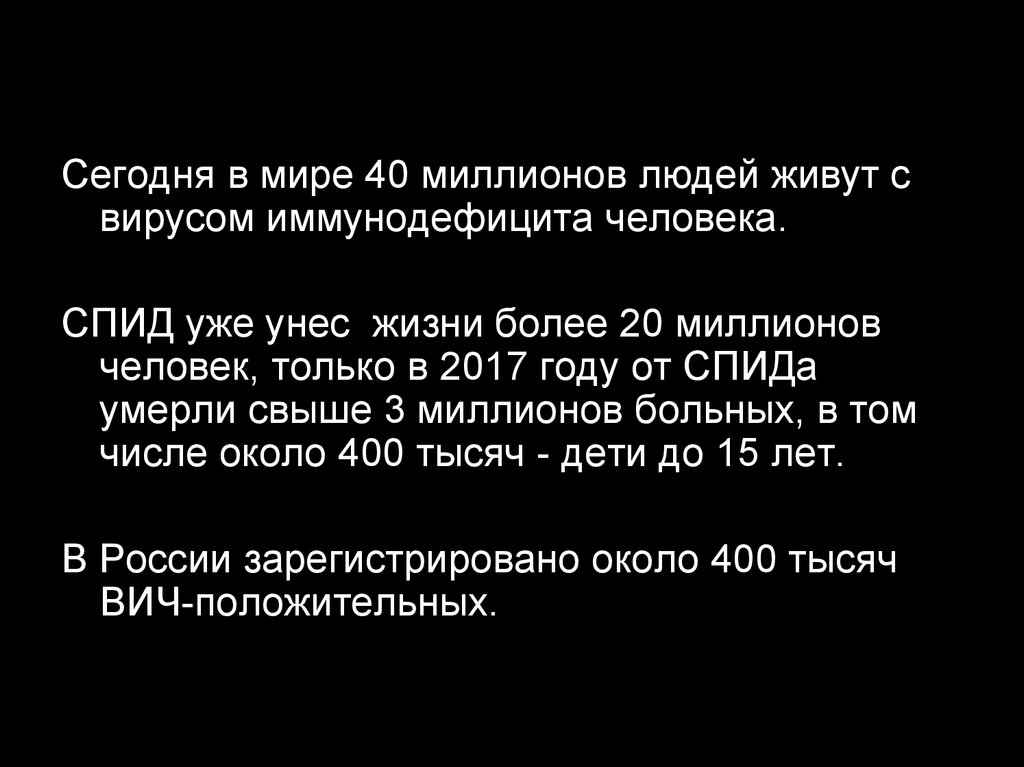 Сегодня в мире 40 миллионов людей живут свирусом иммунодефицита человека.