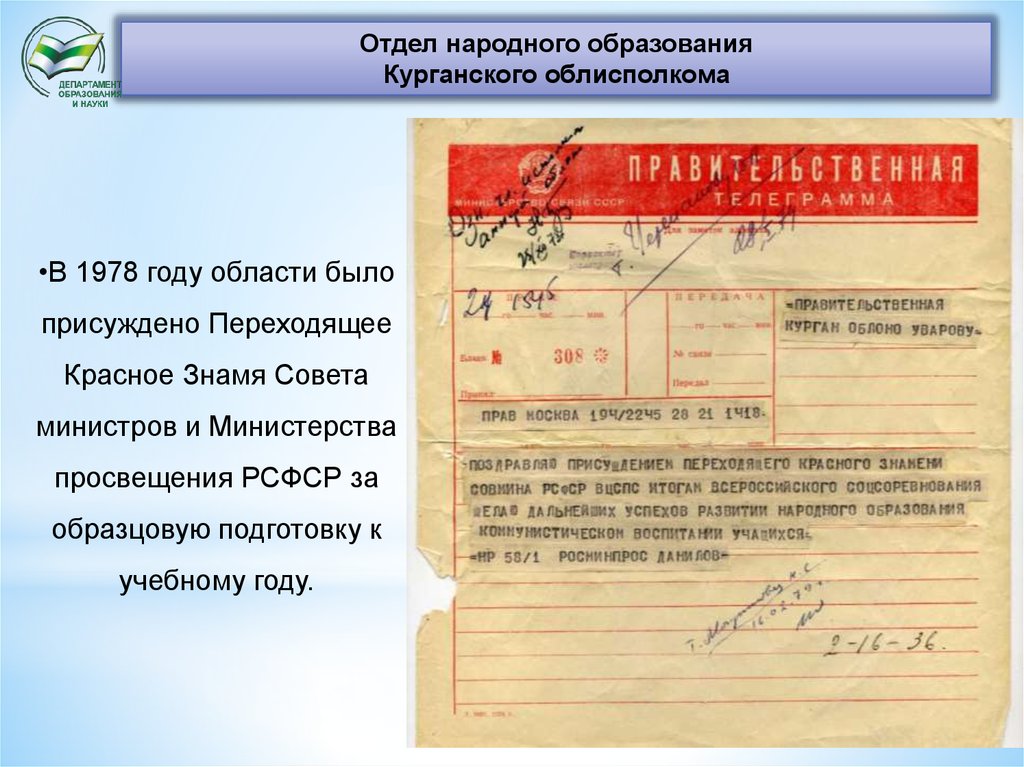 Отдел народного образованияКурганского облисполкома