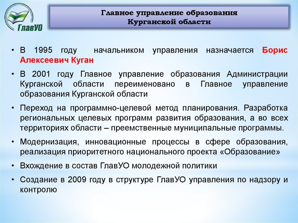 Главное управление образования курганской областиДепартамент образования и науки Курганской области