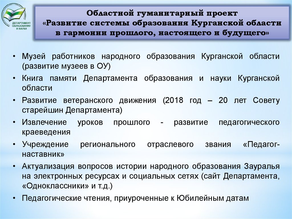 Областной гуманитарный проект«Развитие системы образования Курганской области