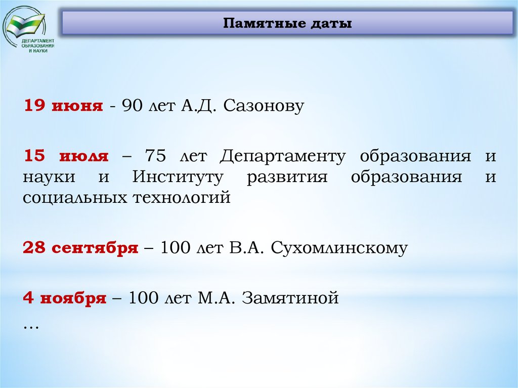 15 июля – 75 лет Департаменту образования и
