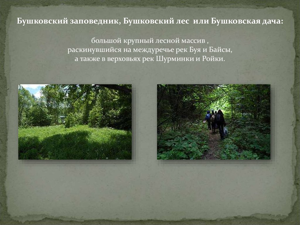 Бушковский заповедник, Бушковский лес или Бушковская дача:большой крупный лесной массив ,