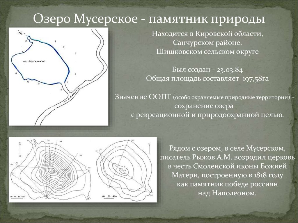 Озеро Мусерское - памятник природыНаходится в Кировской области,