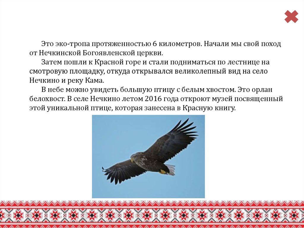 Это эко-тропа протяженностью 6 километров. Начали мы свой походот Нечкинской Богоявленской церкви.