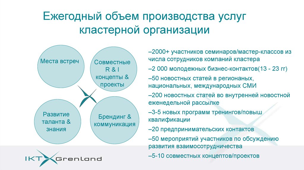 • Собственный опыт работы в сфере кластеров.• Развитие ИКТ кластера Grenland 2002-2011