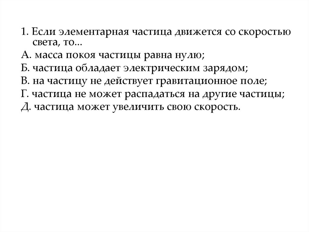 1. Если элементарная частица движется со скоростьюсвета, то...
