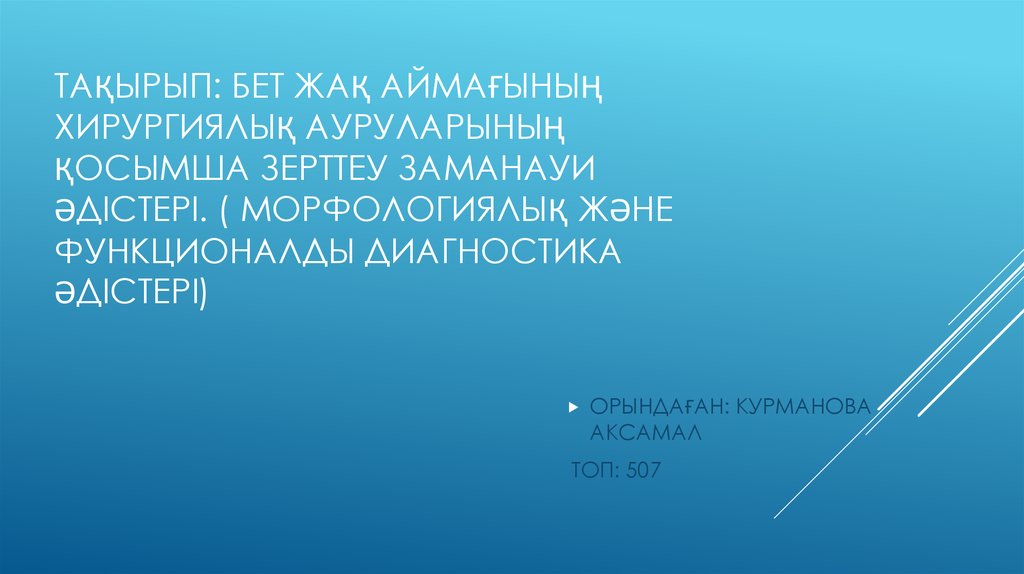 1. Тақырып: Бет жақ аймағының хирургиялық ауруларының қосымша зерттеу заманауи әдістері. ( морфологиялық және функционалды