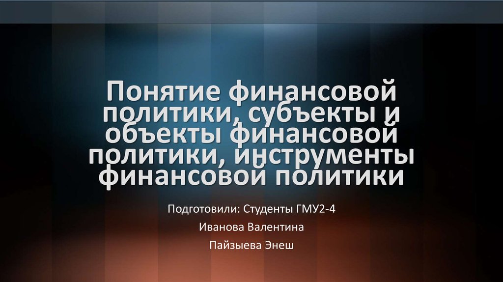 Понятие финансовой политики, субъекты и объекты финансовой политики, инструменты финансовой политики