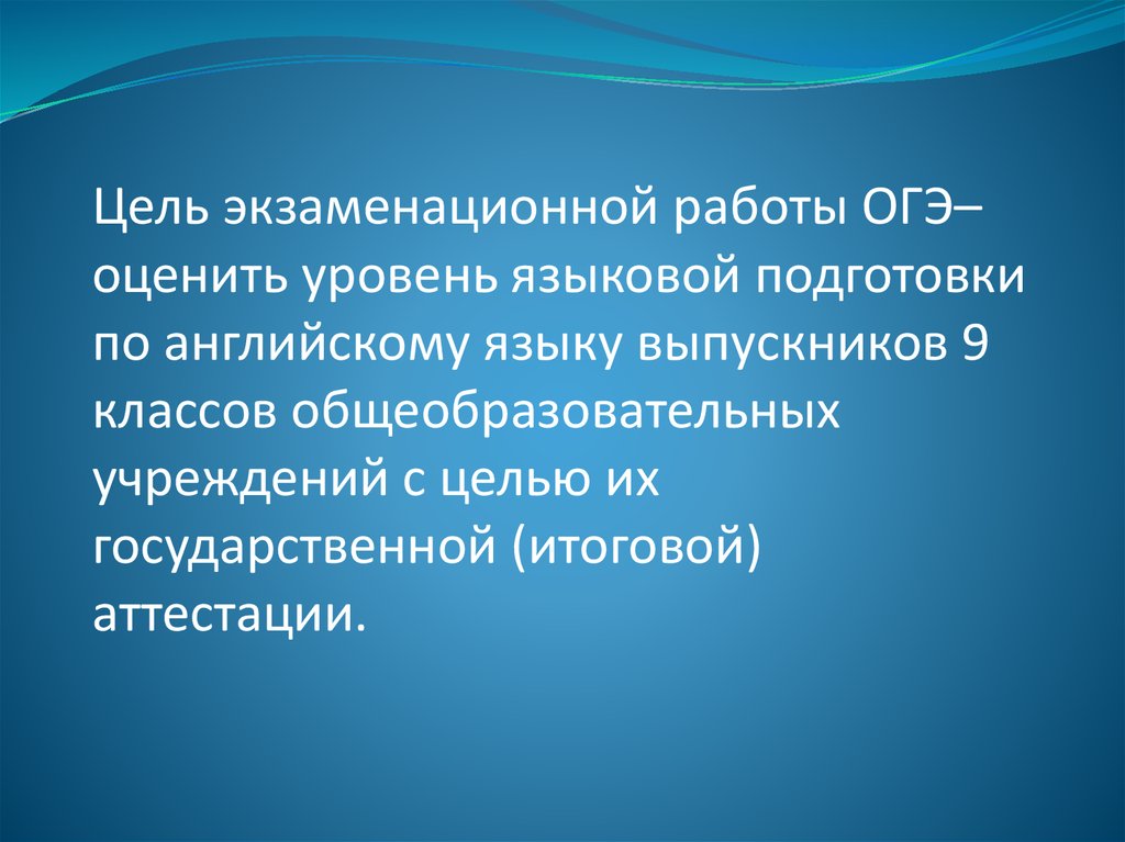 Цель экзаменационной работы ОГЭ–оценить уровень языковой подготовки