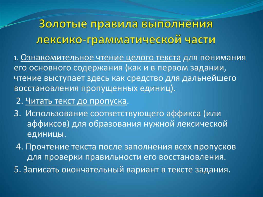 1. Просмотреть весь текст с пропусками, постараться понятьего содержание, последовательность описываемых в нем